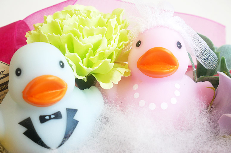新郎新婦ダックが祝福を届ける、かわいい結婚祝いの祝電ギフト