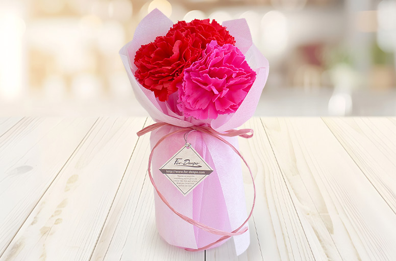 赤とピンクのカーネーションが想いを伝える、母の日限定の電報ギフト
