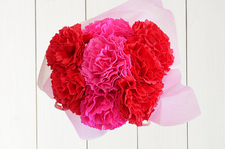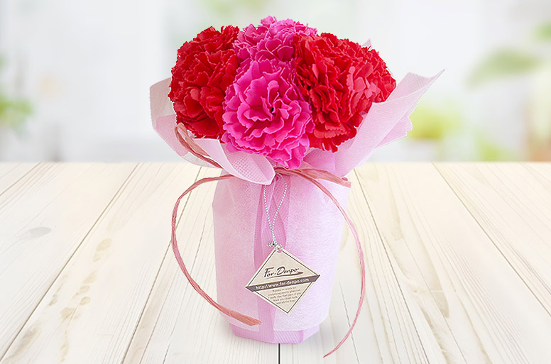 8輪のカーネーションが華やかに咲き誇る、母の日限定の電報ギフト