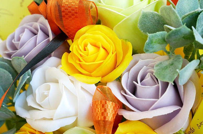 明るい彩りとやさしい香りで祝福を伝える、限定ソープフラワー祝電