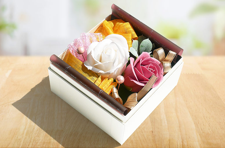 箱を開けた瞬間に華やかな印象が広がり、大切な方へのお祝いの気持ちを美しく届けます。